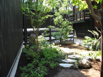 黒板塀に囲まれた場所にしっとりとした和風庭園を造りました。